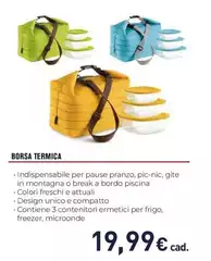 Sfrutta le offerte dei volantini per risparmiare su Borsa Termica. Non importa se stai facendo la spesa per la tua famiglia o se hai bisogno di un regalo speciale, qui troverai articoli a prezzi unici.
